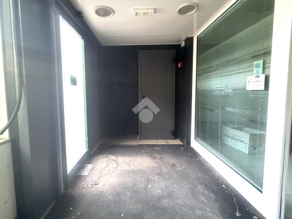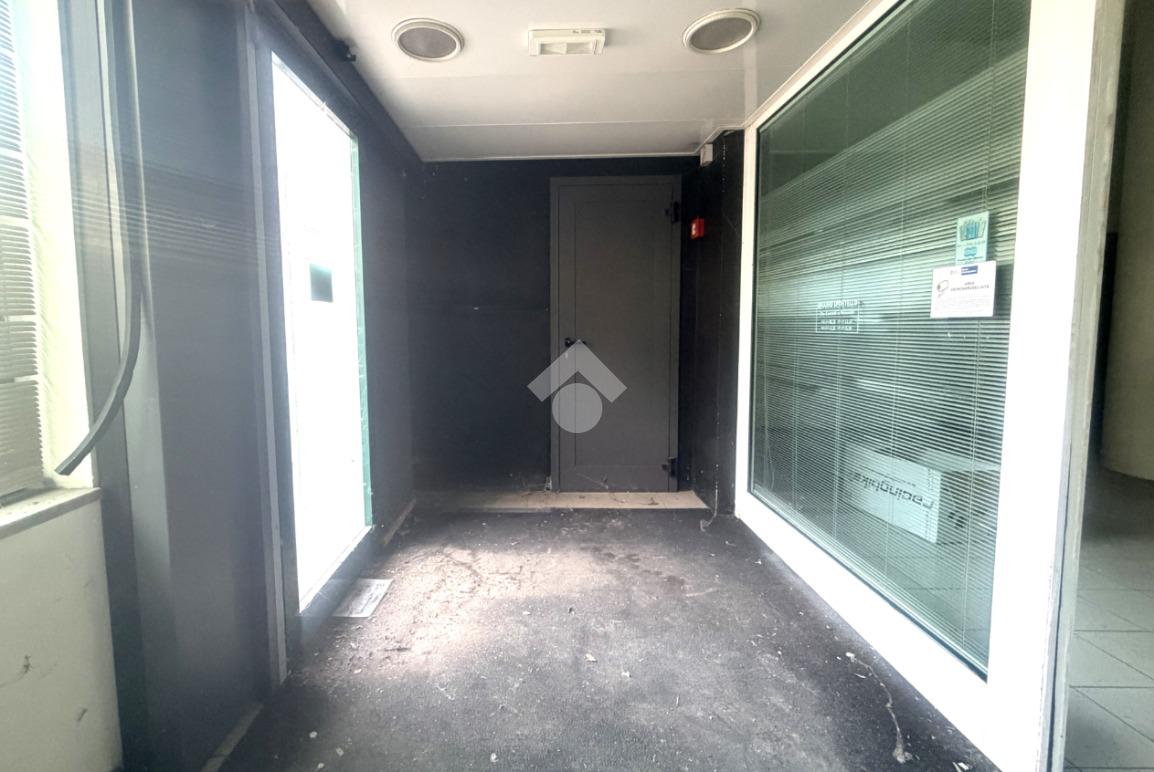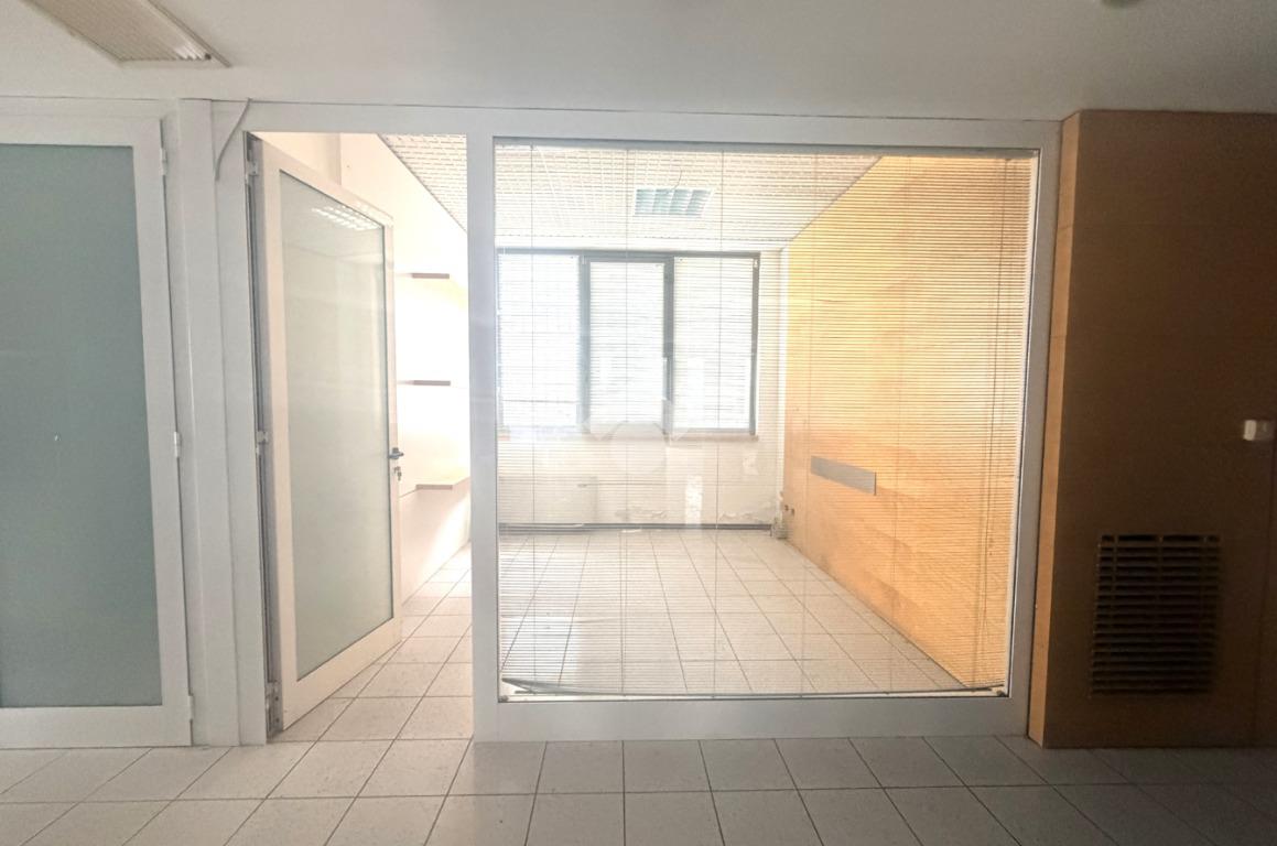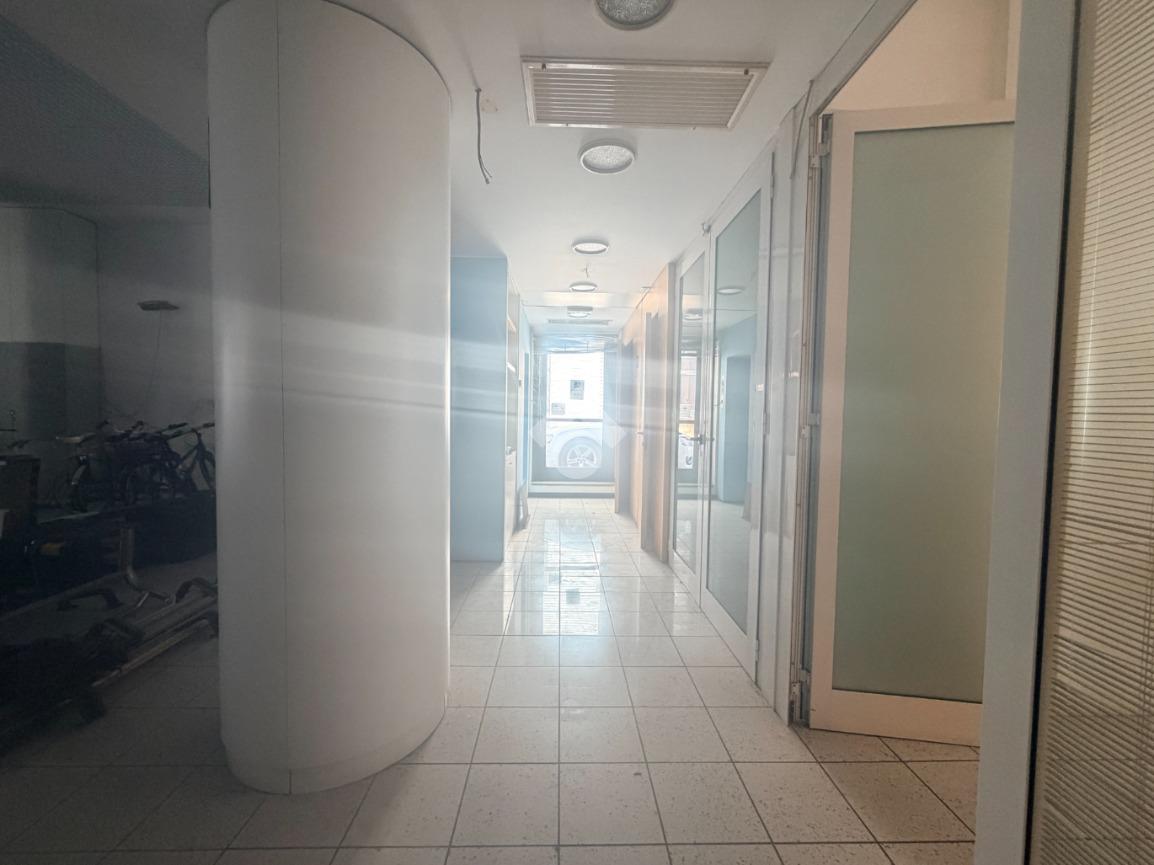 L' interno il locale è in open space piu zona uffici e bagni con una porta a lato dell'edificio per un ingresso dipendenti sulla via laterale.