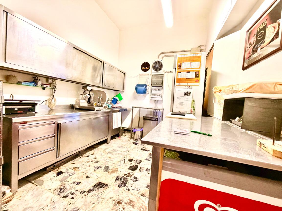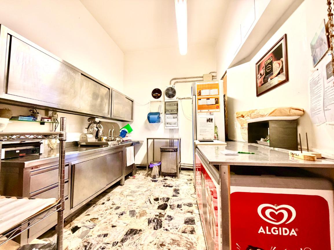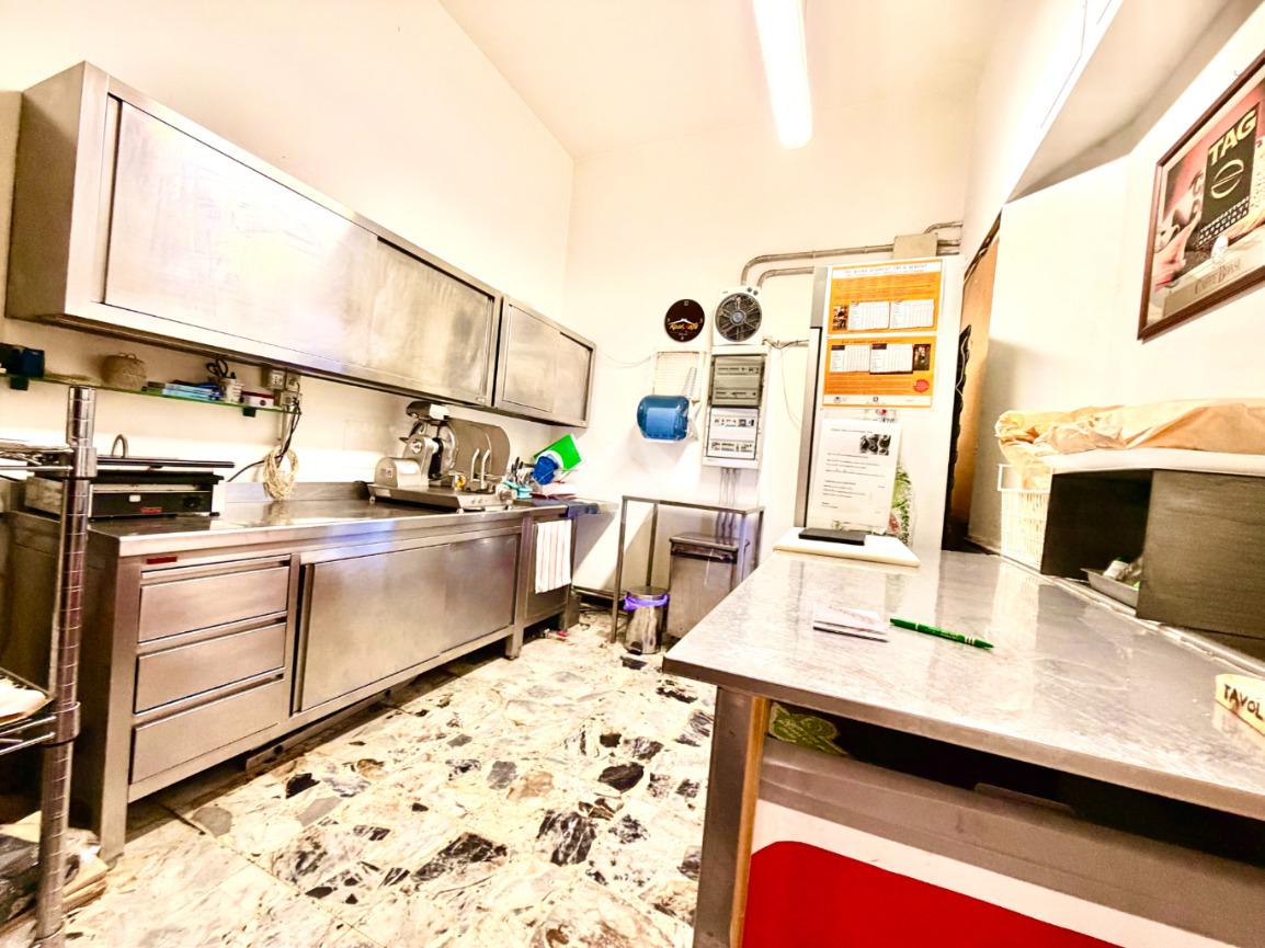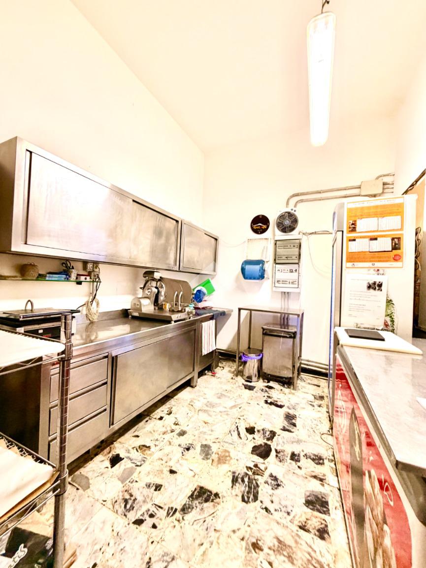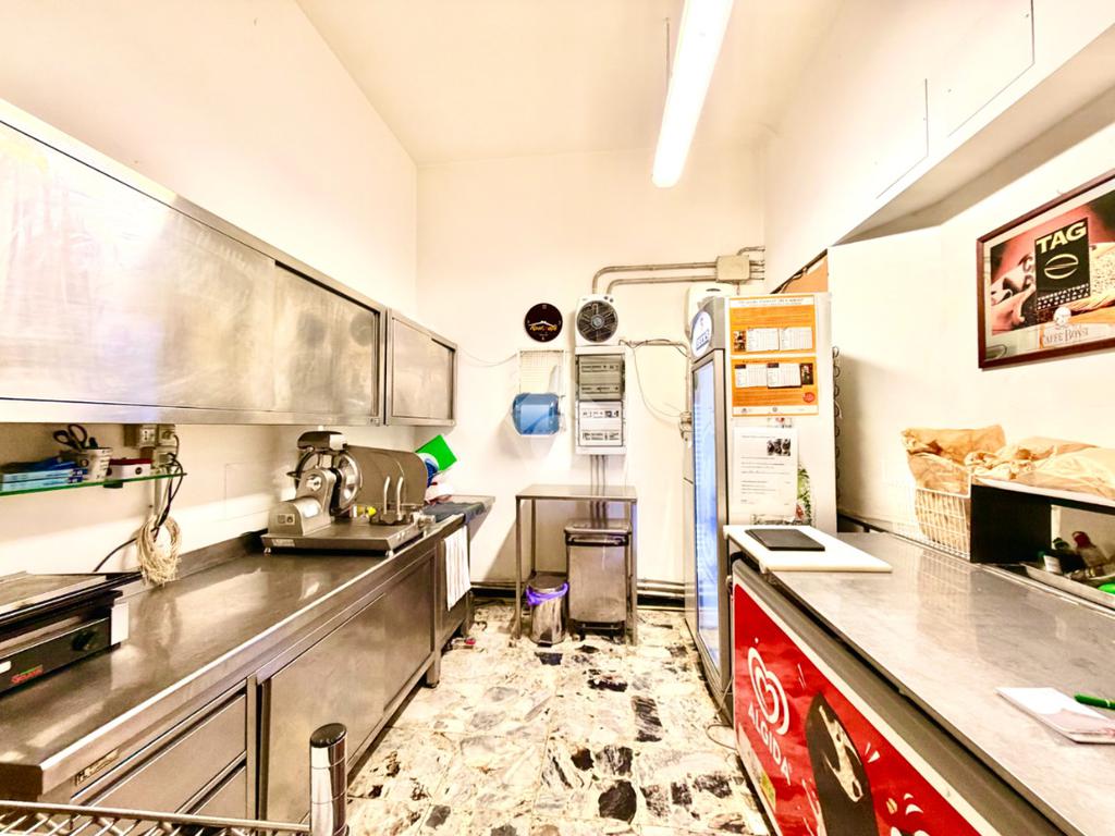 Gli spazi comprendono una sala dedicata ai clienti, cucina attrezzata per la preparazione delle proposte gastronomiche, bagno, spogliatoio per il personale e un comodo magazzino per lo stoccaggio delle merci.